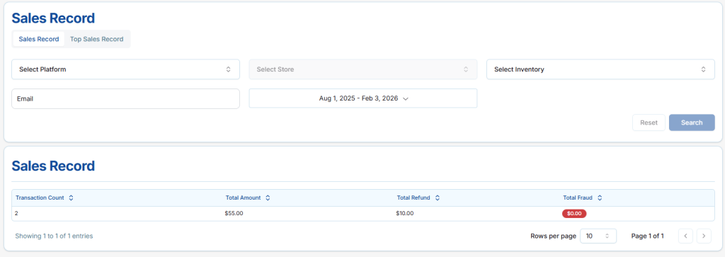 This feature allows sellers to track overall performance, identify trends, and manage their sales effectively while maintaining full visibility into refunds and fraudulent transactions.