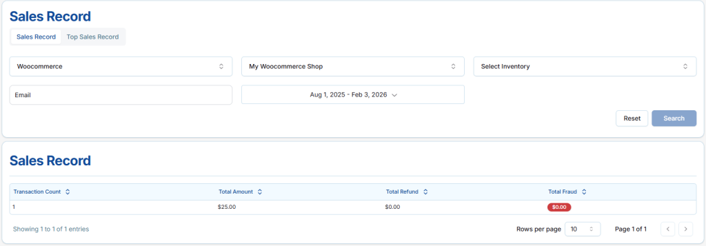 - Email – Search sales by buyer email.