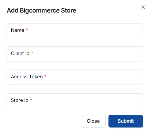 To connect your store, you need bigcommerce Client Id, Access Token, and Store Id.