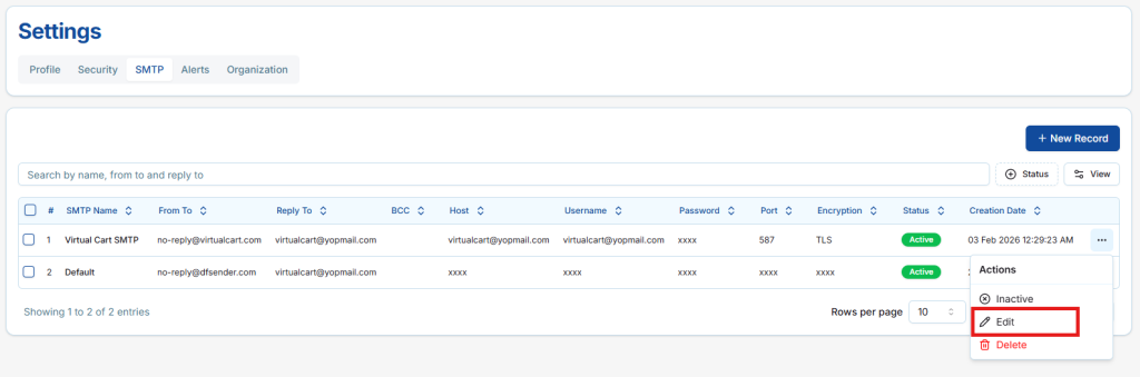 4. Edit SMTP Details
