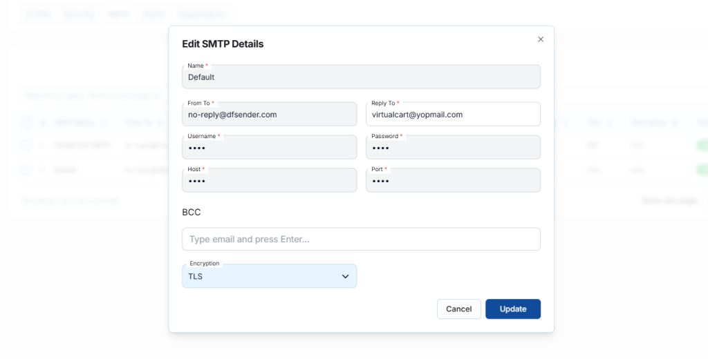 can update the SMTP details.