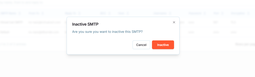 Click Confirm in the modal. The SMTP will be