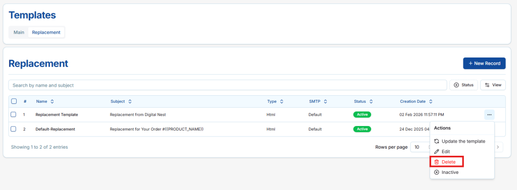 ⚠️ Note: Templates that are currently in use cannot be deleted.
