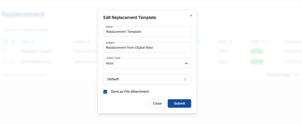 - Name – You can modify the Template name.